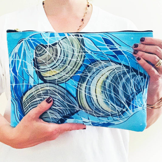 Small Blue Coastal Clams Zipper Clutch Pouch