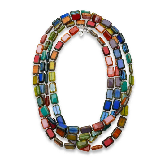 Rainbow Multicolor Long Beaded Necklace, Candyland Trilogy