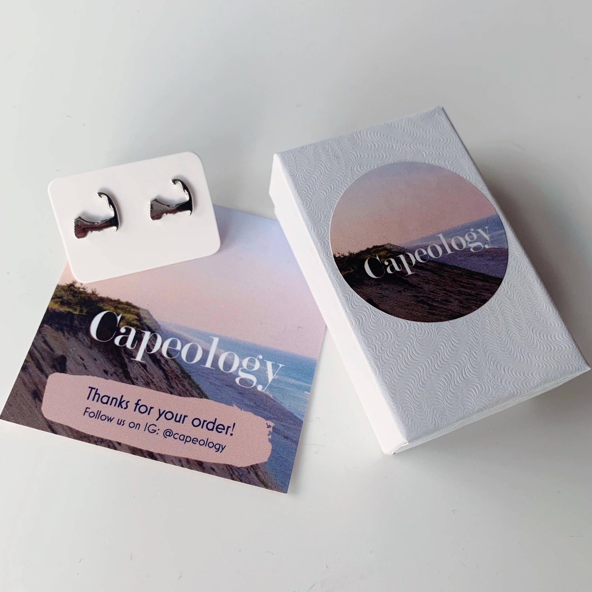 Each back of earring is engraved with "CAPEOLOGY."