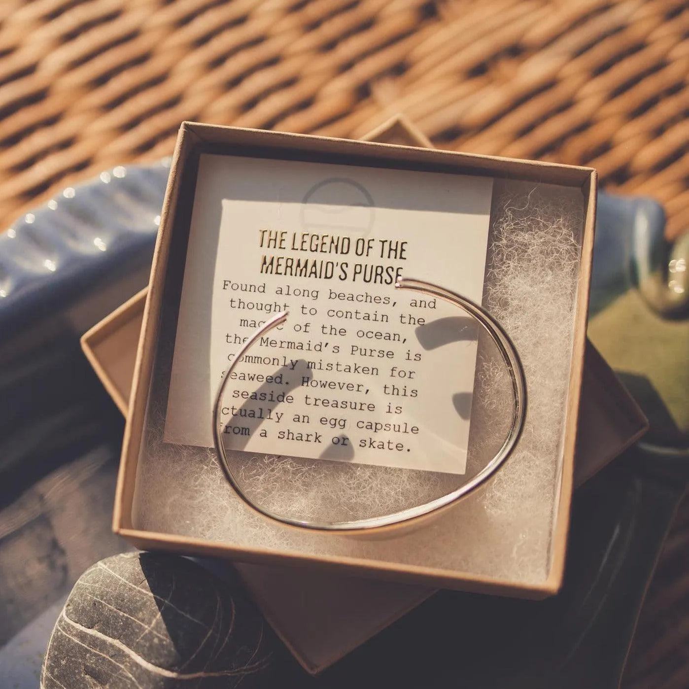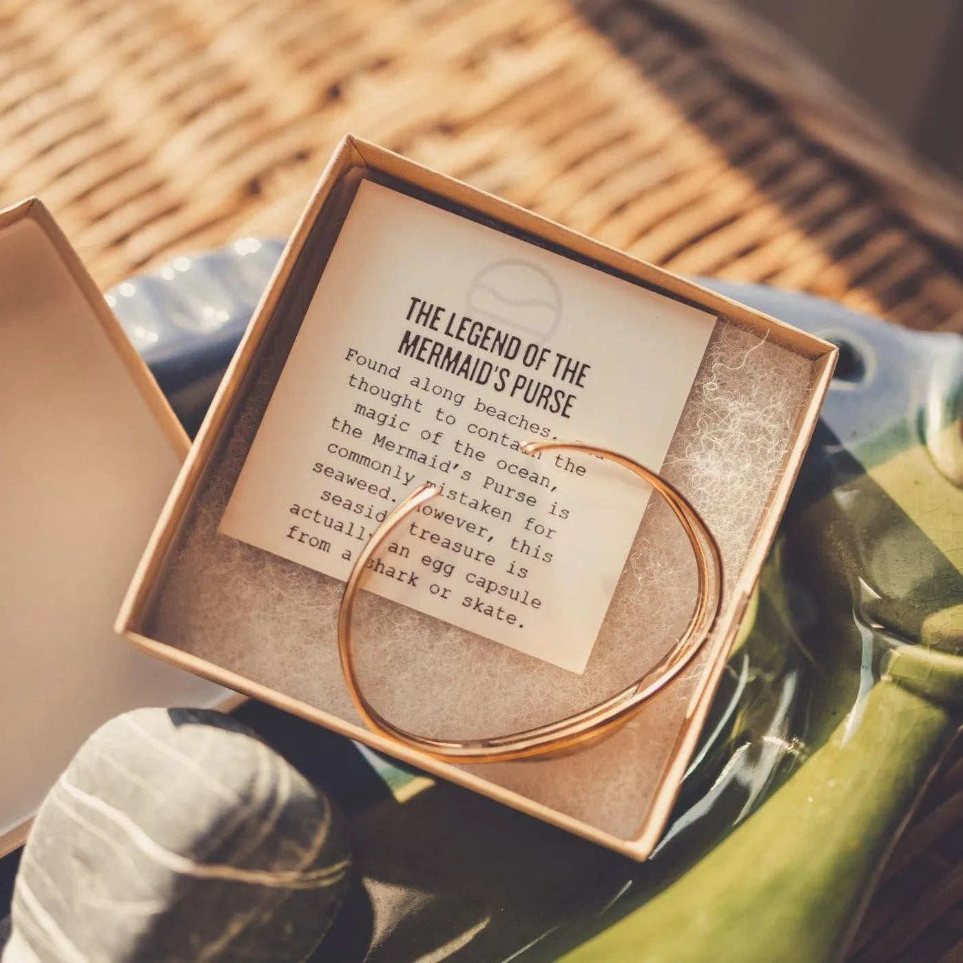 Dive into the enchanting world beneath the waves with Cape Clasp's Mermaid's Purse Cuff Bracelet. Named after the unique egg cases, also known as devil's purses, that house baby skates, sharks, or dogfish, this bracelet embodies the mystique and magic of the sea.
