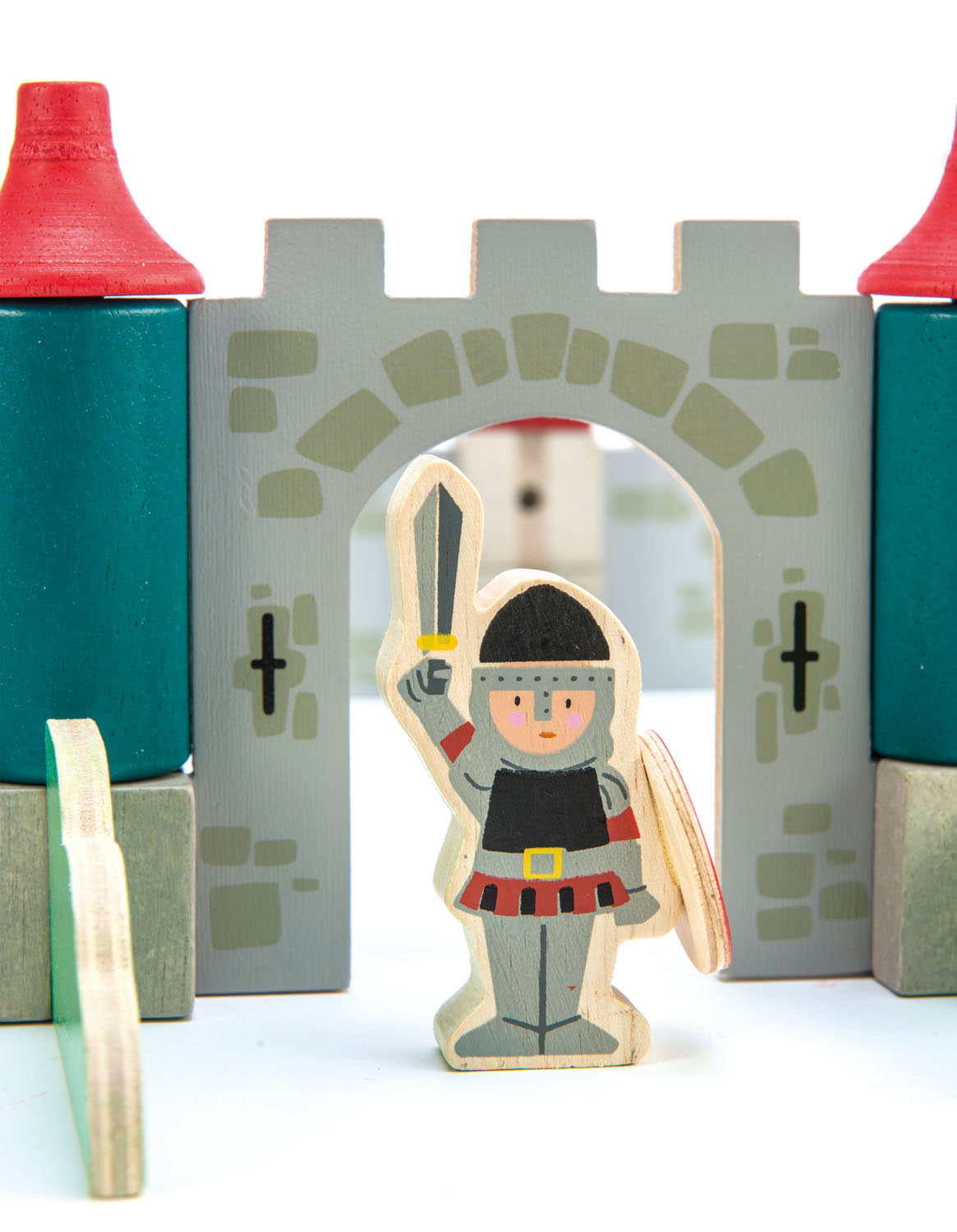 Be the king of Royal Castle! The Magnificent Royal Castle features red and blue soldiers with different postures, heraldic shields and spears, 2 jousting tents, horses to sit on, trees, a fire dragon and a working trebuchet. This comprehensive and luxury size set has all you need to create and build your own unique castle layout, by clipping together walls and posts with small neat plastic pegs.
