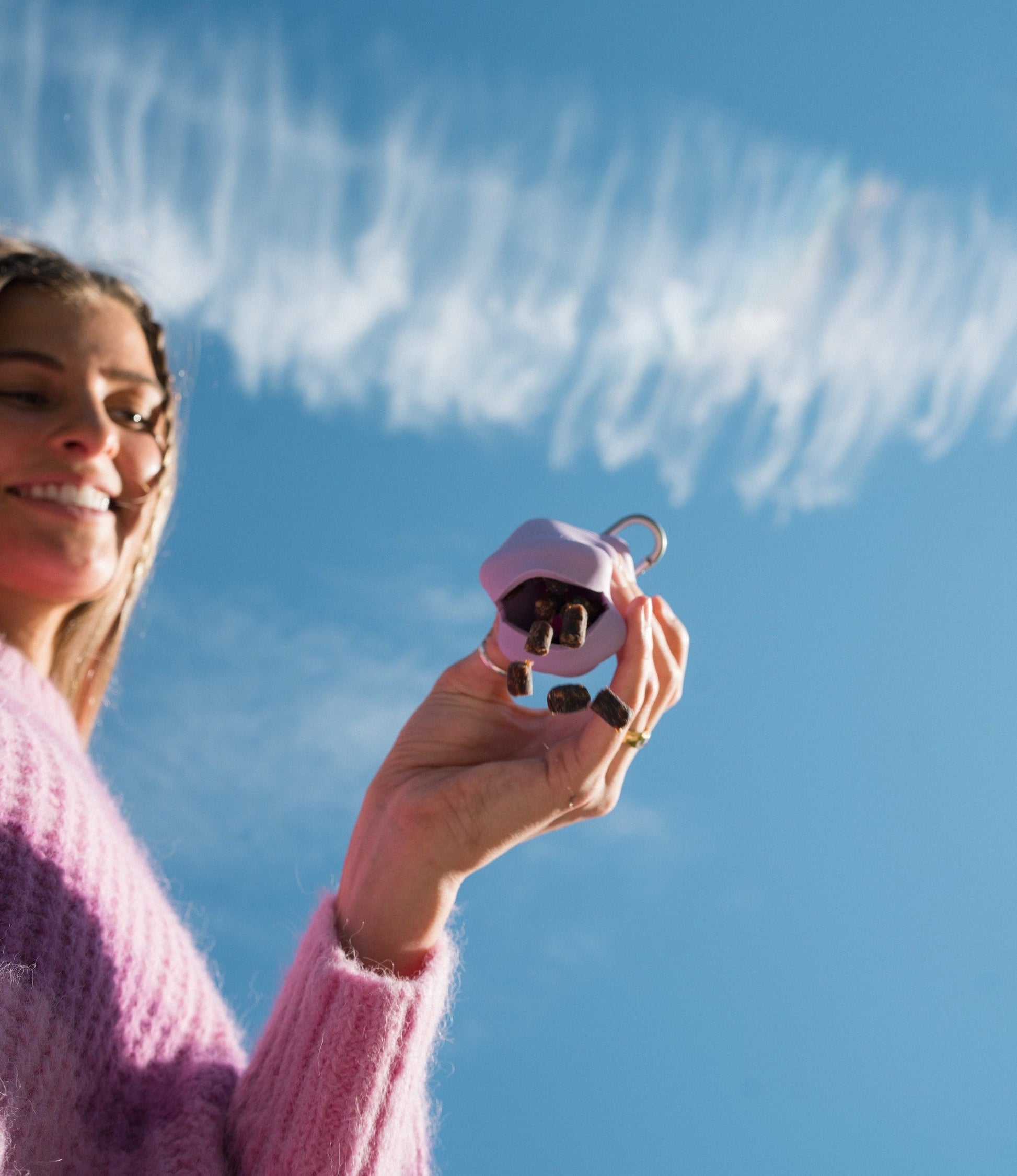 Never fumble with treats or loose kibble again! Whether you're training in the park, going on long walks, or rewarding good behavior during adventures, keeping treats accessible and mess-free shouldn't be a constant struggle. Our Premium Silicone Dog Treat Dispenser gives you instant reward dispensing anywhere your training takes you with the ultimate portable design. Our innovative squeeze-to-dispense design lets you reward your pup with perfect portion control - simply squeeze the uniquely shaped dispenser to release just the right amount of treats every time. The food-grade silicone construction is safe, durable, and easy to clean while the ergonomic shape fits comfortably in your hand or pocket. No messy bags, no spilled treats, no training interruptions! It's the smart solution that makes every training session more effective and every walk more rewarding. Easy to fill - just squeeze with the opening facing up and add your dog's favorite kibble or training treats.
