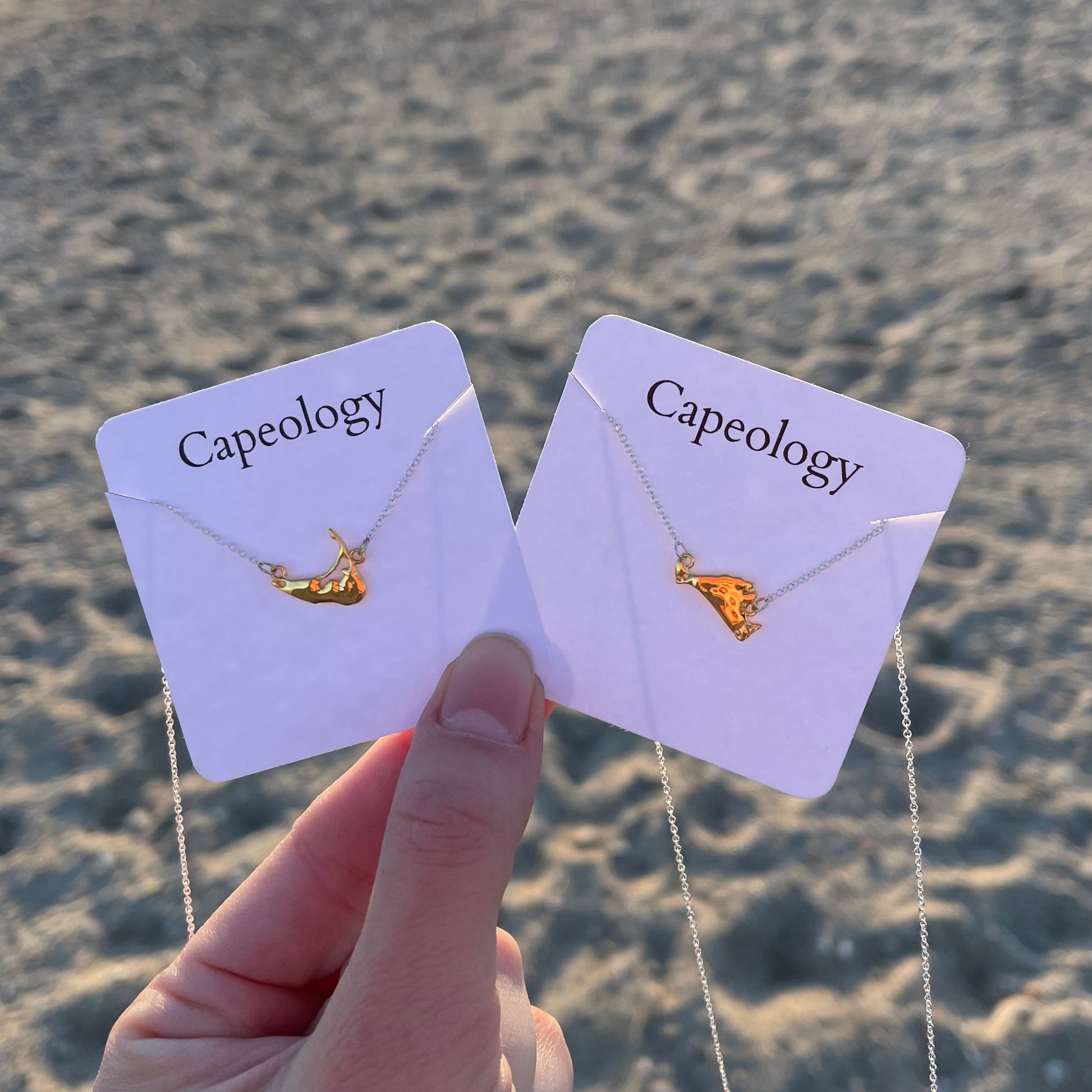 Our Capeology Nantucket necklace lets you wear this special place wherever you go. The chain is adjustable and can be worn at 16, 17, 18, or 19 inches in length. The back of the necklace is engraved with "CAPEOLOGY."