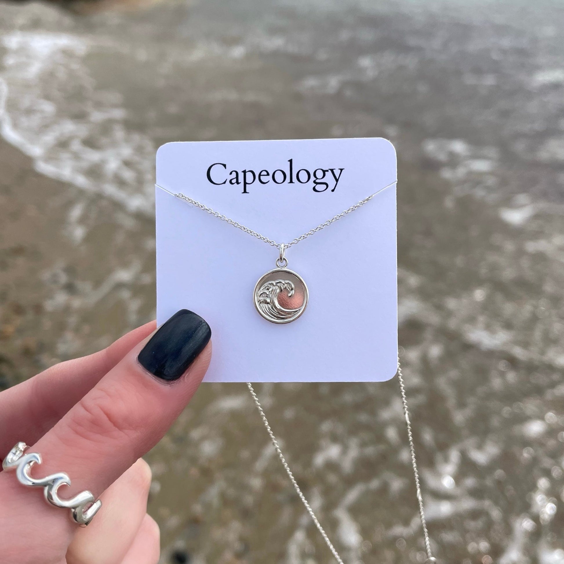 Our Capeology wave necklace symbolizes growth, renewal, change, and transformation. Wear this necklace as a reminder through the ebb and flow of life, just ride the wave and what's meant to be will be.