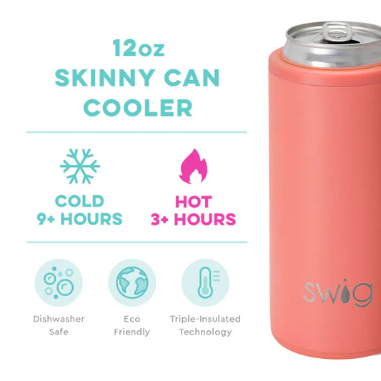 Matte Coral 12oz Skinny Can Cooler
