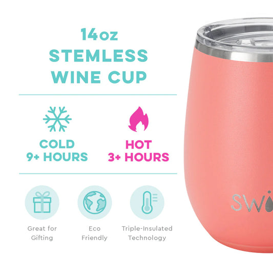 Coral Stemless Wine Cup (14oz)