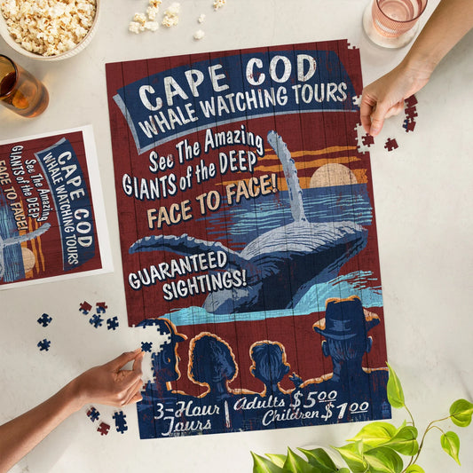 1000 Piece Puzzle Blue Whale Watching Vintage Sign
