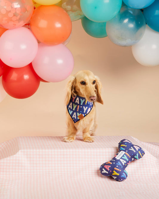 Birthday YAY Navy Dog Bone Squeaky Toy