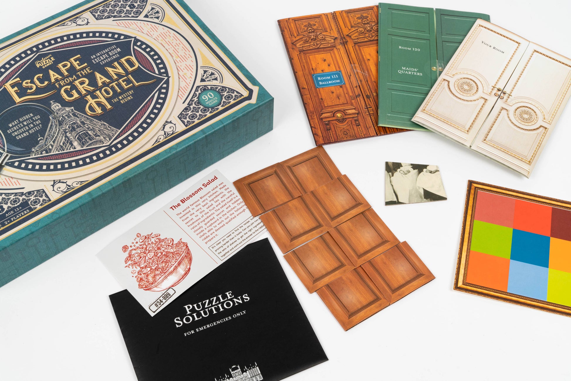 Invite your guests, set the scene, and get ready to host a night of fun and intrigue. Each guest can come dressed as one of the eight characters, ready to play their role. During the evening, they must travel through the hotel solving the series of mysterious puzzles that release them from each room. The ultimate quest? To uncover the hidden secrets and escape from the Grand Hotel.