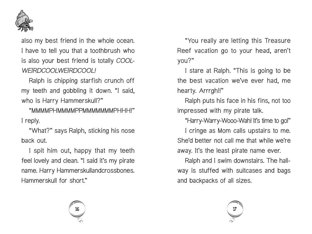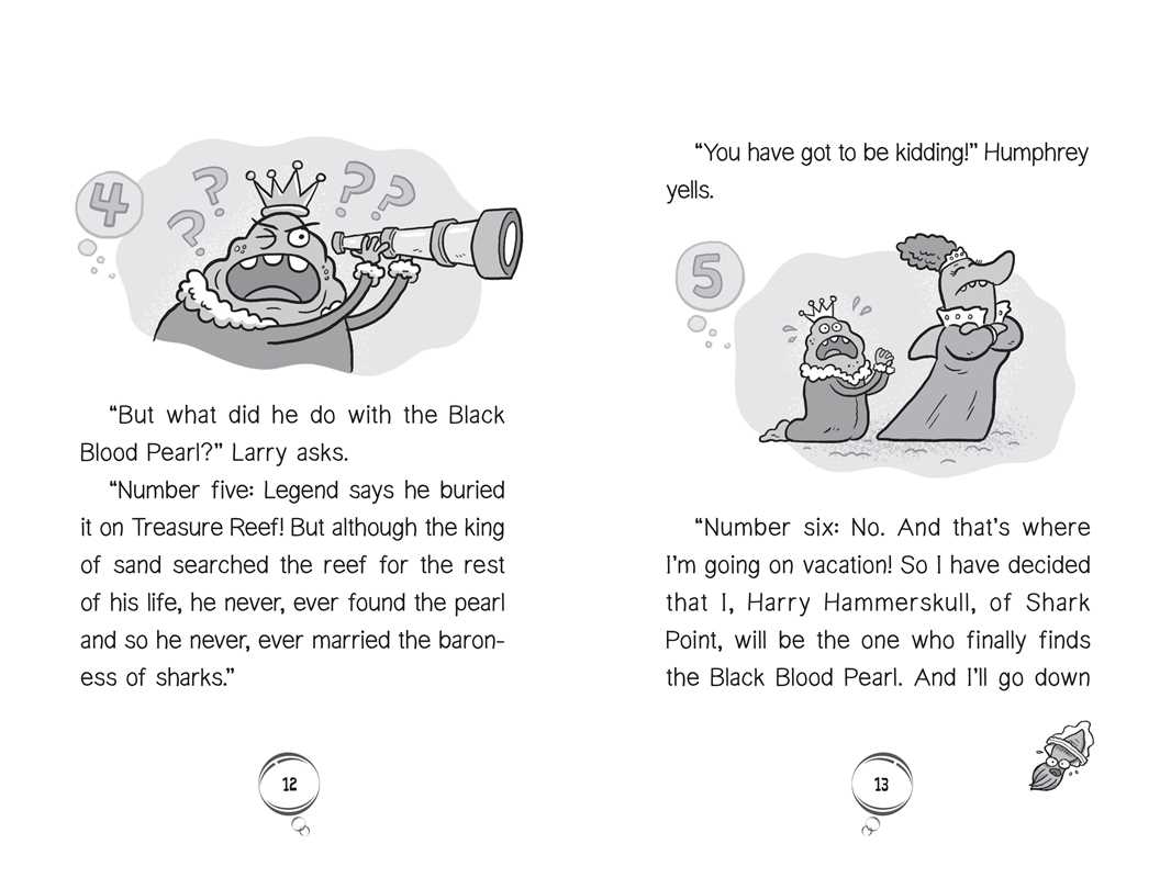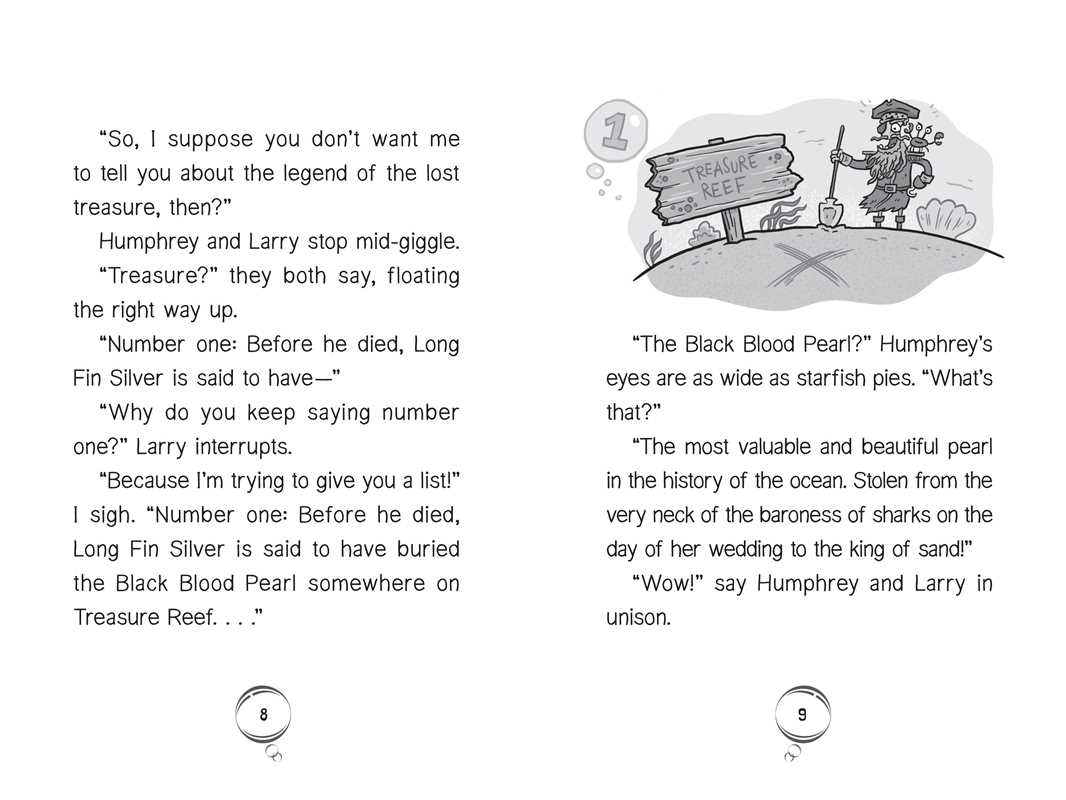 Harry Hammer can’t believe his luck! He and his family are going on vacation to Treasure Reef, home of The Lost Treasure of that dastardly, long-ago pirate Long Fin Silver. Legend has it that Long Fin buried the Black Blood Pearl, the most valuable and beautiful gem in the history of the ocean. Harry and his pesky cousin Harvey are on the hunt for treasure, but they best beware of where they look, as they’re about to come fin-to-fin with the spooky spirit of Long Fin Silver himself!