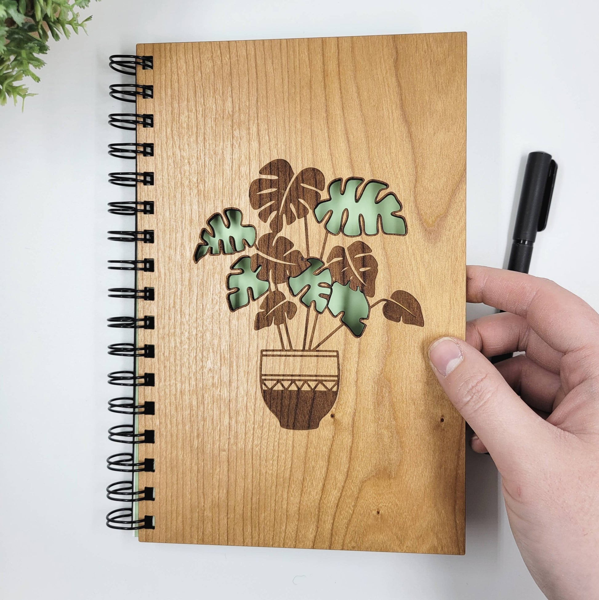 Monstera Plant Wood Journal - Stationery, Journals, Notebook: Blank Paper