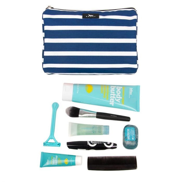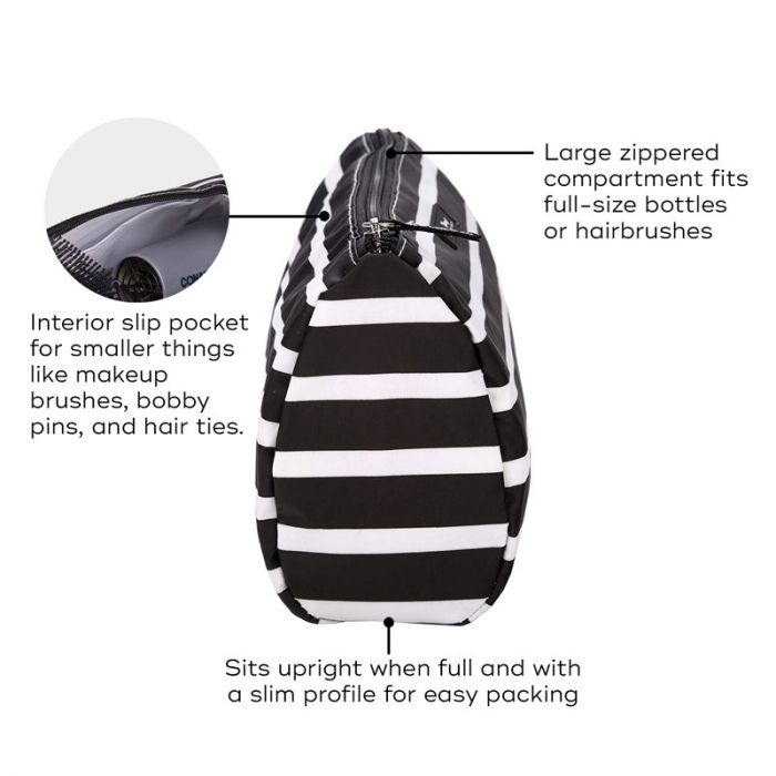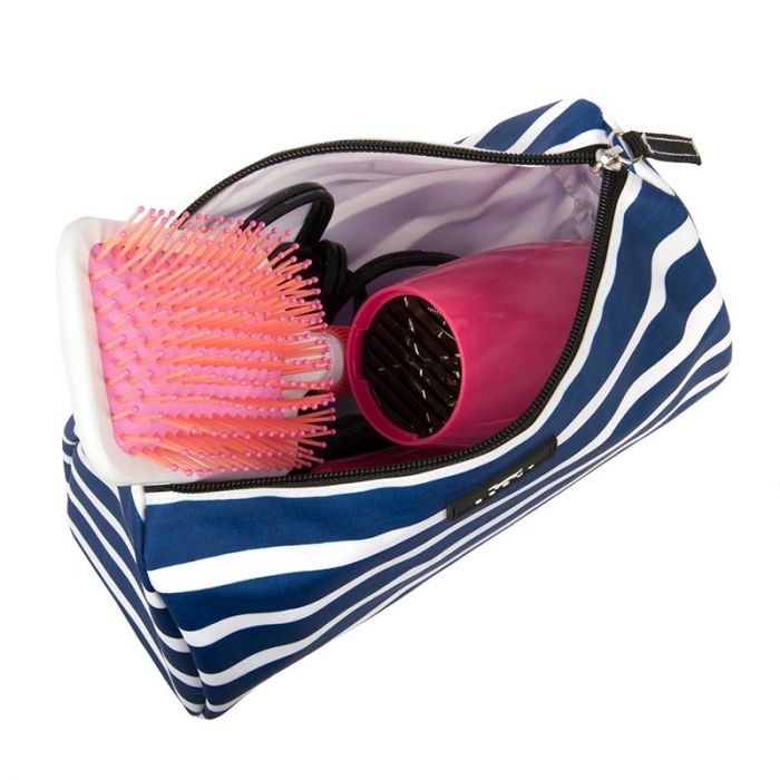House all your makeup or travel accessories in one place. There's an interior pocket for smaller things, like bobby pins and hair ties. The makeup bag is large enough to fit your hair brush.