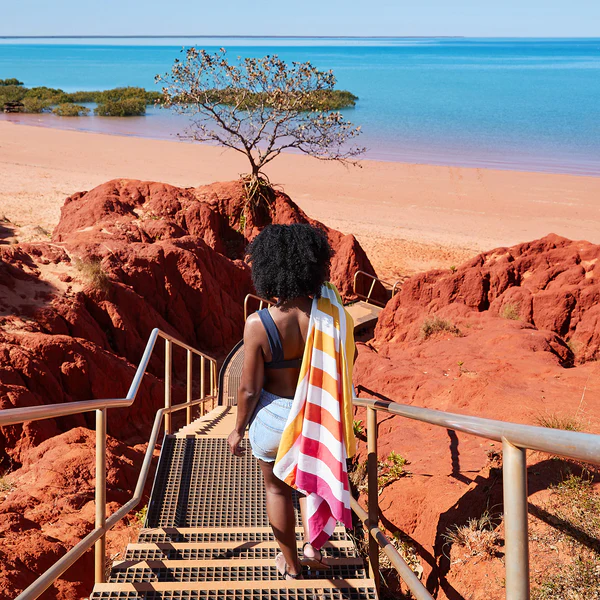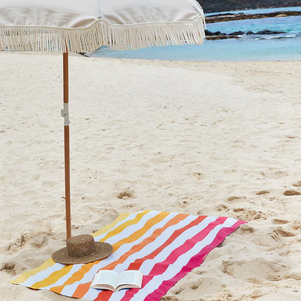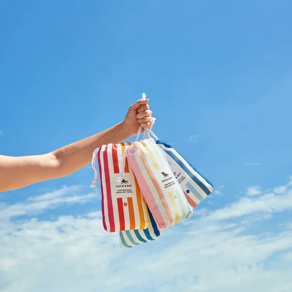 No time to wait for a towel to dry? Neither do we. Grab a quick dry beach must-have from our classic Cabana collection. Forever fresh - No more damp smells or sogginess Planet-kind - Made from 100% recycled plastic bottles Lightweight & compact - Ideal for travelers and explorers Repels sand - Unique loopless fabric, so sand shakes off Absorbent - They do dry you Free pouch - Carry your towel in its little matching bag