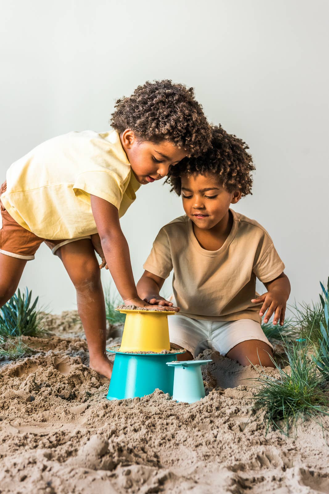 The Alto is a three-part toy inspired by professional sand-builders. Its stackable, small-medium-large components allow kids to become an expert, creating firm structures that won’t crumble away in minutes. No need for multiple buckets…simply fill, press and form, now your multi-layered tower is done!