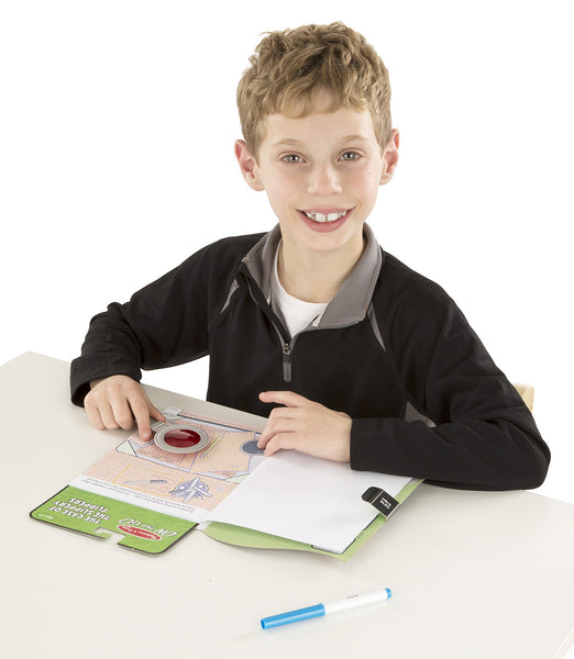 Add some mystery to travel days and test sleuthing skills with this super-cool, portable Secret Decoder mystery and activity book! Detective tools store conveniently right in the travel-size book cover! All 18 pages of activities include mazes, seek-and-find pictures, puzzles, word scrambles and more. A perfect take-along activity book, the On-the-Go Secret Decoder book helps teach cognitive development and problem solving, and encourages independent play.