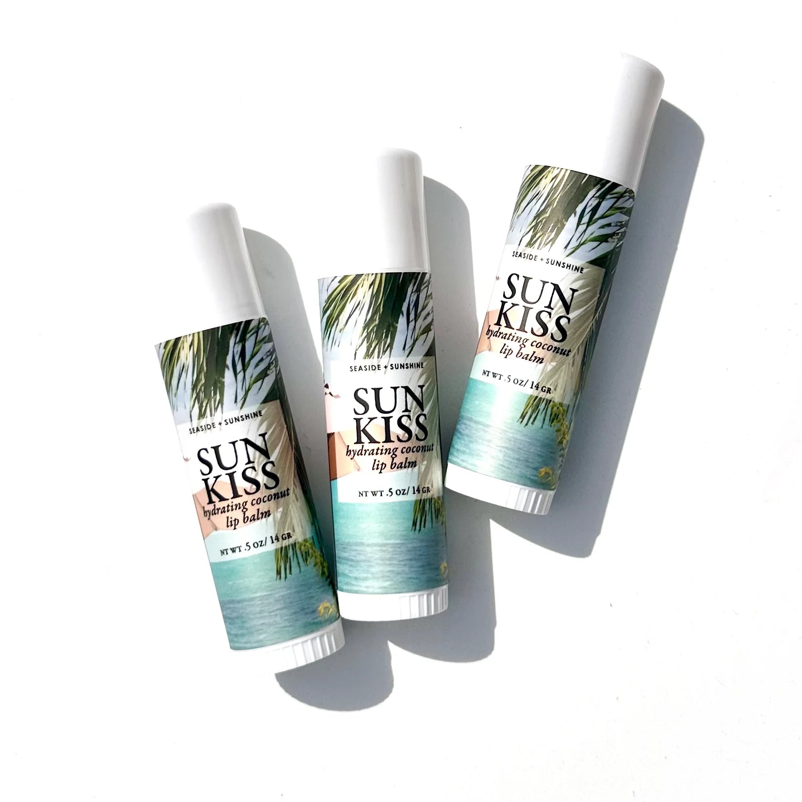 Seaside and Sunshine's SUNKISS hydrating lip balm is a luxurious way to seal in moisture and give your lips a beautiful summer glow.