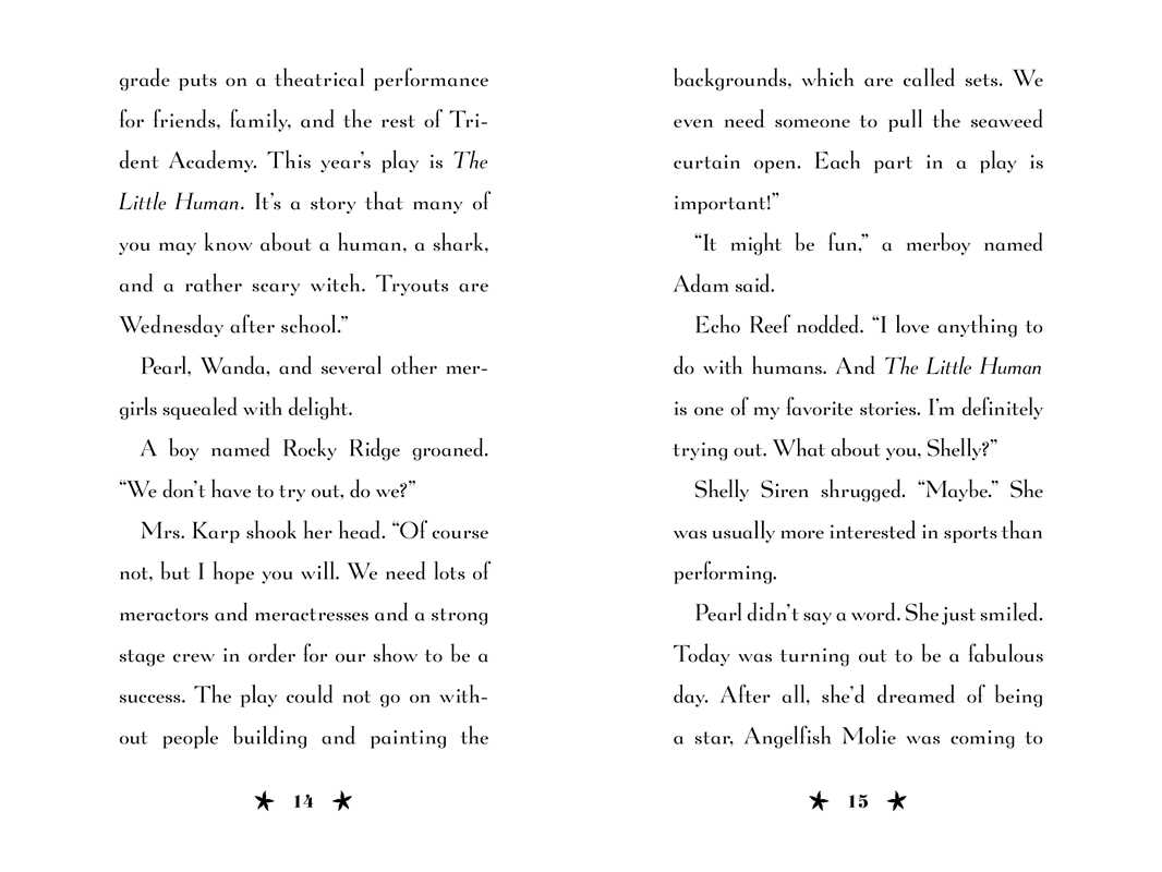 Pearl has always dreamed of being famous: the star-studded stage, the sea flowers, the applause! So when she finds out that her third grade class is performing The Little Human, she just knows she’ll get the leading role. Especially since world-renowned merstar Angelfish Molie is judging the tryouts!